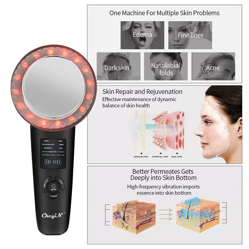 6 в 1 EMS массажер для похудения тела RF ультразвуковой кавитационный антицеллюлитный массаж сжигатель жира потеря веса уход за кожей лицаХарактеристика:【 6 в 1 Функция s】в сочетании с высокочастотной вибрацией, EMS массажер, синий светильник, красный светильник, импорт ионов и функция экспорта ионов, устройство хорошо работает как для похудения, так и для массажа тела.【Функция удаления жира 】эта машина может помочь в похудении путем содействия растворению жира, повышения эластичности кожи и ускорения метаболизма. Хорошо работает на животе, руках и ногах, особенно для послеродового восстановления.【 6 массажных Modes】EMS, вибрация, sonic, инфракрасный луч, ионы и 6 красочных ламп для массажа лица и тела и эффективного омоложения кожи.【 6 светодиодный свет 】каждый свет поставляется с различными функциями для комплексного ухода за кожей.【Portable для Using】Designed в удобный Размер 8,5x18,9 см, он может быть брать с собой для массажа пользоваться как дома, так и во время поездок в любое время, где бы вы ни находились.6 режимов функции:1) Ультра-звуковая волна: сжигание жира и формирование тела.2) EMS: кровообращение.3) фотонный светильник: отбеливание кожи и омоложение.4) инфракрасное нагревание: Повышение метаболизма.5) Вибрация: способствует питанию.6) Анион: выход примесей.6 функций цветного освещения:1) Красный светильник (длина волны 640нм пронизывает кожу 1-6 мм): регенерирует клетки, улучшает кровообращение, ослабляет пигмент, снимает боль2) зеленый светильник (длина волны лазера 532nm пронизывает кожи 0,5-2,0 мм): успокойтесь, глубоко ремонт, отбеливает кожу.3) синий светильник (длина волны 440нм пронизывает кожу 1 мм): успокаивает аллергию, удаляет акне, удаляет бактерии.4) Желтый светильник (длина волны 58 нм пронизывает кожу 1-2 мм): выцветают красные пятна, снимают покраснения и отбеливают веснушки.5) фиолетовый светильник (длина волны 430нм пронизывает кожу 1 мм): выцветают красные пятна, удаляют акне и восстанавливают кожу.6) голубой светильник (длина волны 490нм пронизывает кожу 1 мм): увеличивает энергию клеток, улучшает обмен веществ, улучшает качество кожи.Внимание:1) Не заряжайте устройство в глубокой среде.2) Если у вас под рукой индикатор заряда светильник не светильник, снимите USB кабель и заряжает снова.3) Удалите гель, эссенцию или грязь на устройстве перед зарядкой.4) перед использованием проведите тест на кожу. Если кожа кажется ненормальной, немедленно прекратите использование5) Не оставайтесь в одном месте в течение длительного времени, чтобы избежать каких-либо повреждений, вызванных слишком высоким уровнем или чрезмерным использованием.Спецификация:Материал: АБС-пластик, нержавеющая стальНапряжение: 100-240 ВЧастота: 50/ 60 ГцЗвуковая частота: 1 МГцРазмер: 8.5x18.9 смПосылка:1 х Основное устройство1 х адаптер питания1 х электродный кабель4 электрода колодки1 пара массажных перчатокРуководство пользователя-1 шт.1 x пластырь для глаз![]()