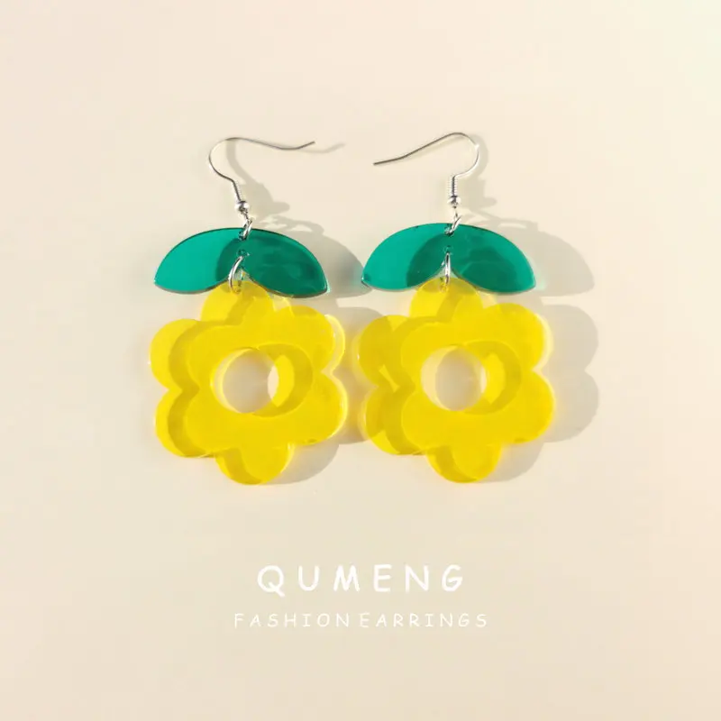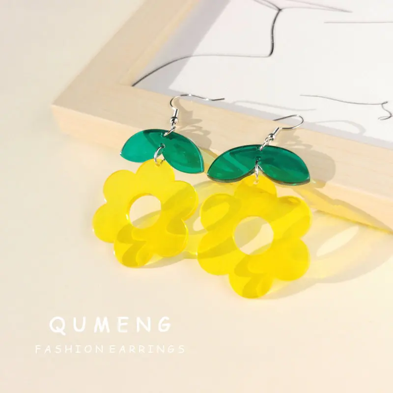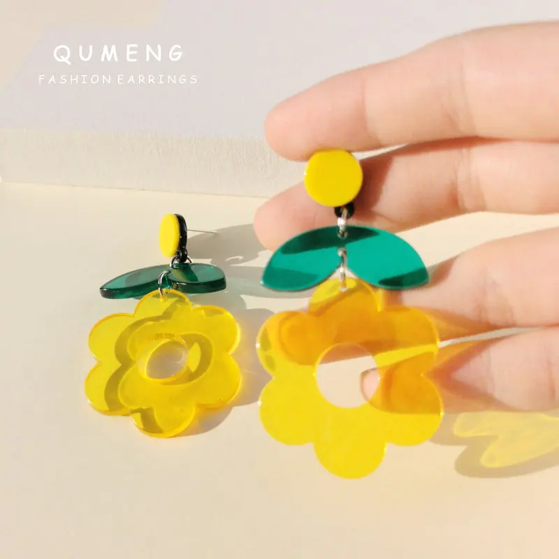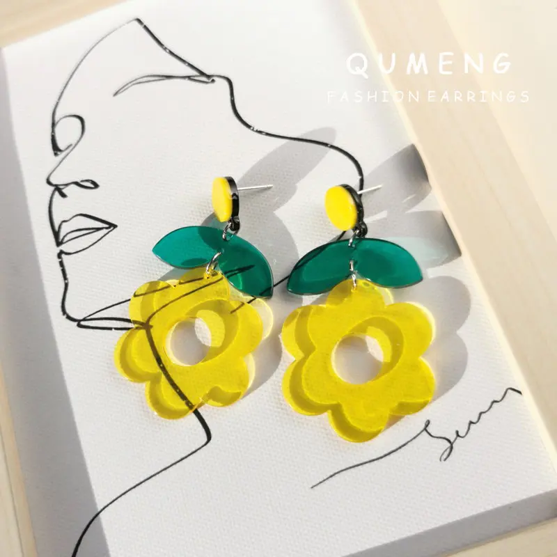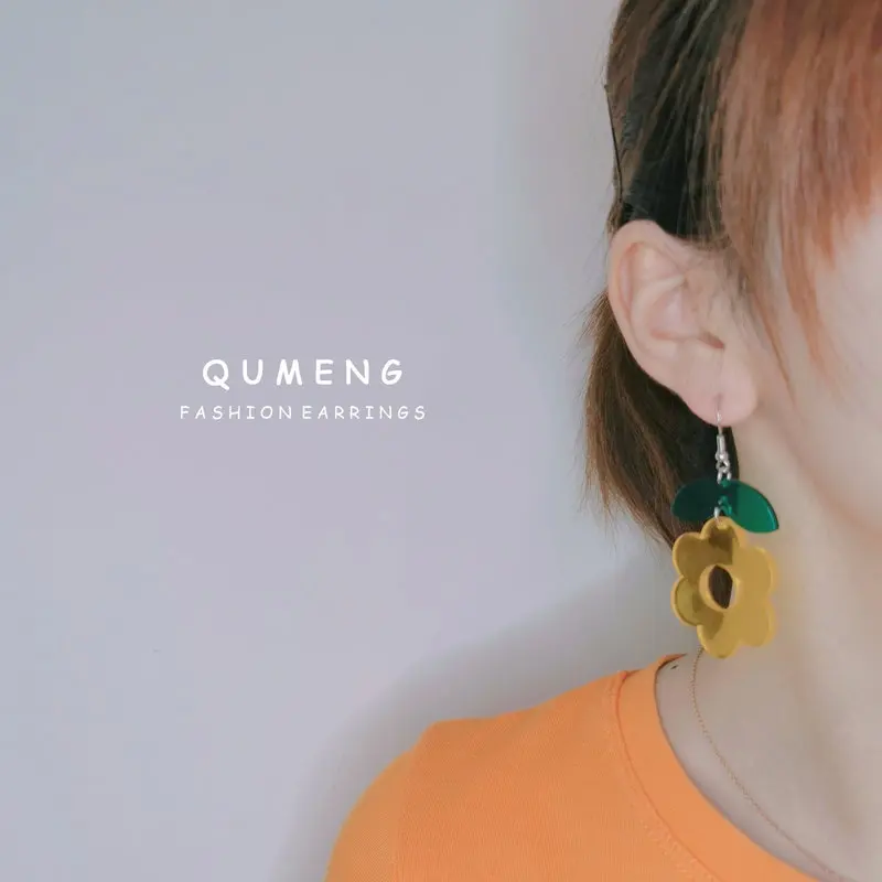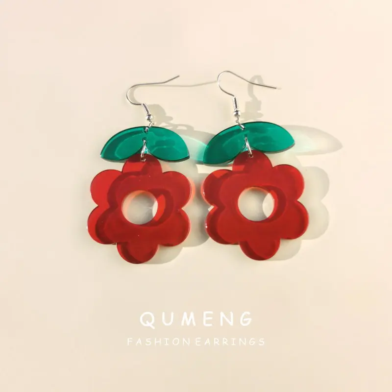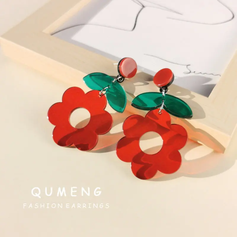 Отзывы о Серьги-капли QUMENG Classic Korea из акрила с яркими красно-желтыми цветами для женщин и девушек в модных аксессуарах