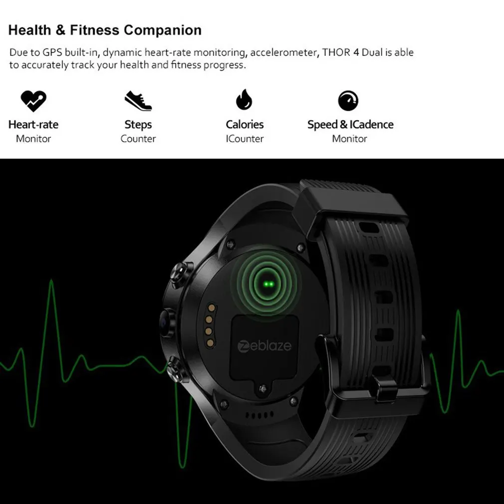Купить Zeblaze THOR 4 Dual 4G SmartWatch 5.0MP + двойная камера 1 "AOMLED GPS/GLONASS Гб 16 Смарт часы для