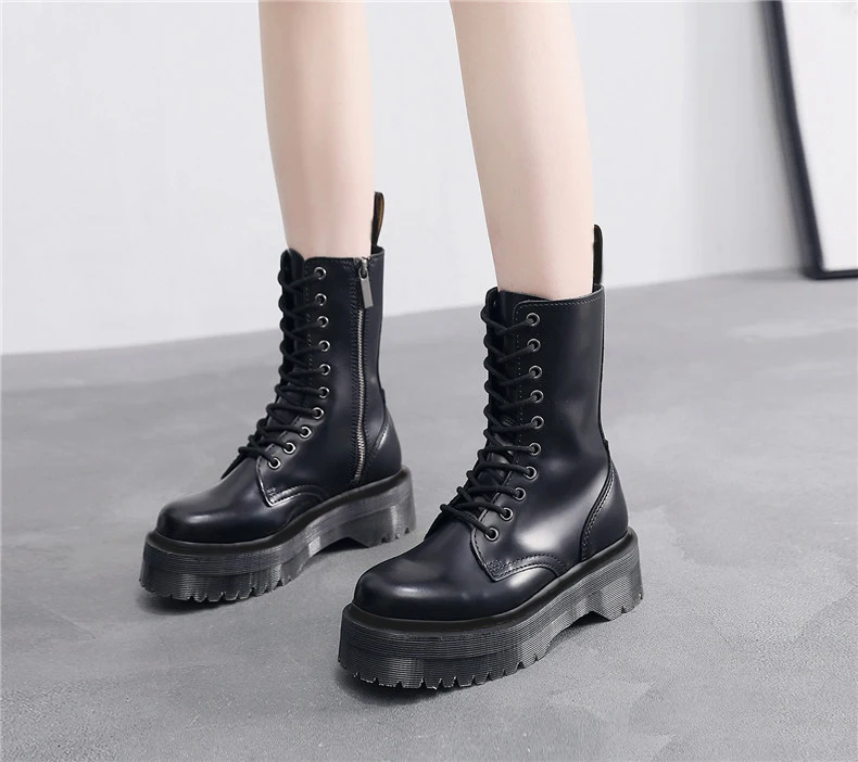 Отзывы о Черные ботинки на платформе с молнией Модные женские ботильоны в готическом
