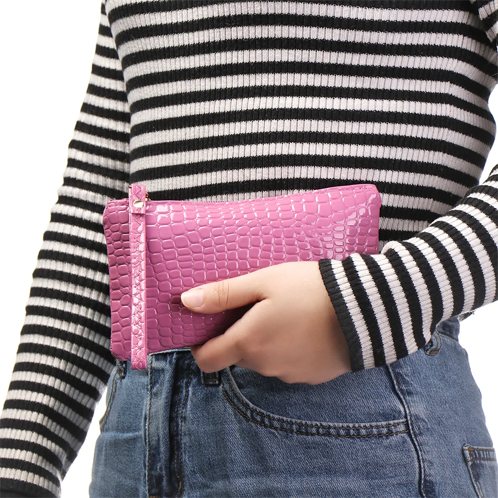 Women Fashion PU Leather Wallet Waterproof Phone Pocket Pure Color Coin Small Pouch Cosmetic Bag Ladies Clutch Tote
