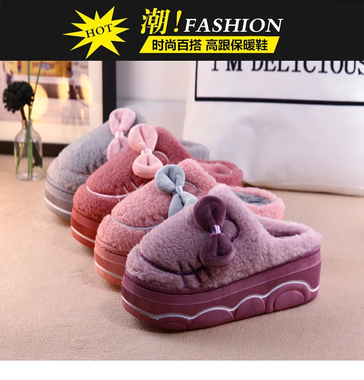 Купить Женские зимние шлепанцы на платформе меховые домашние для девочек пушистые мюли