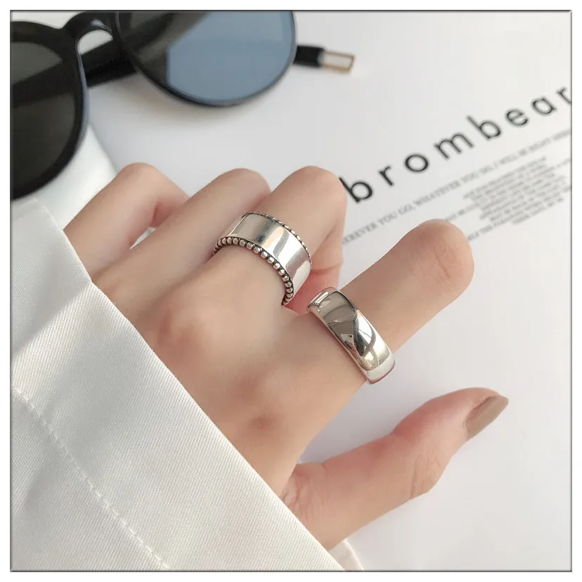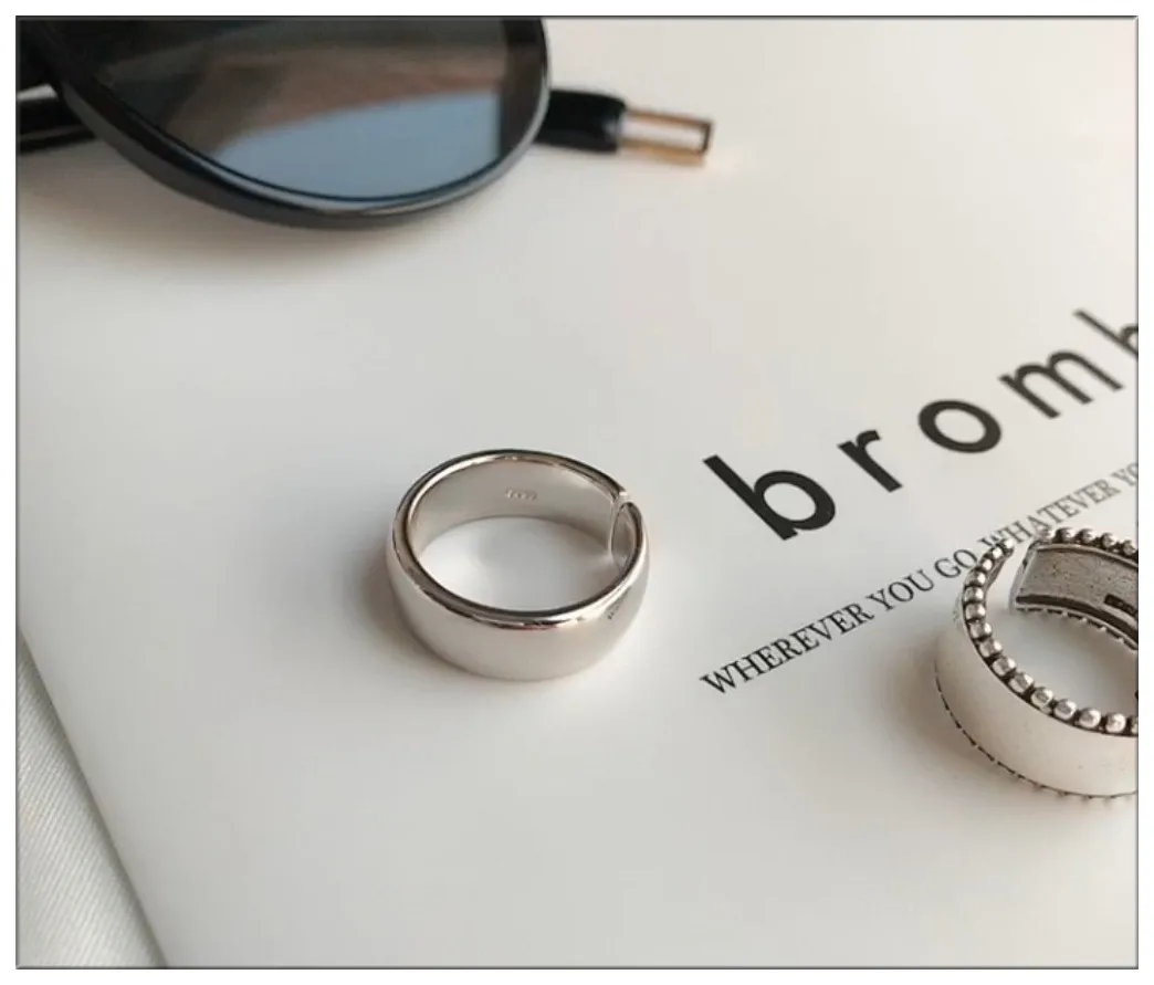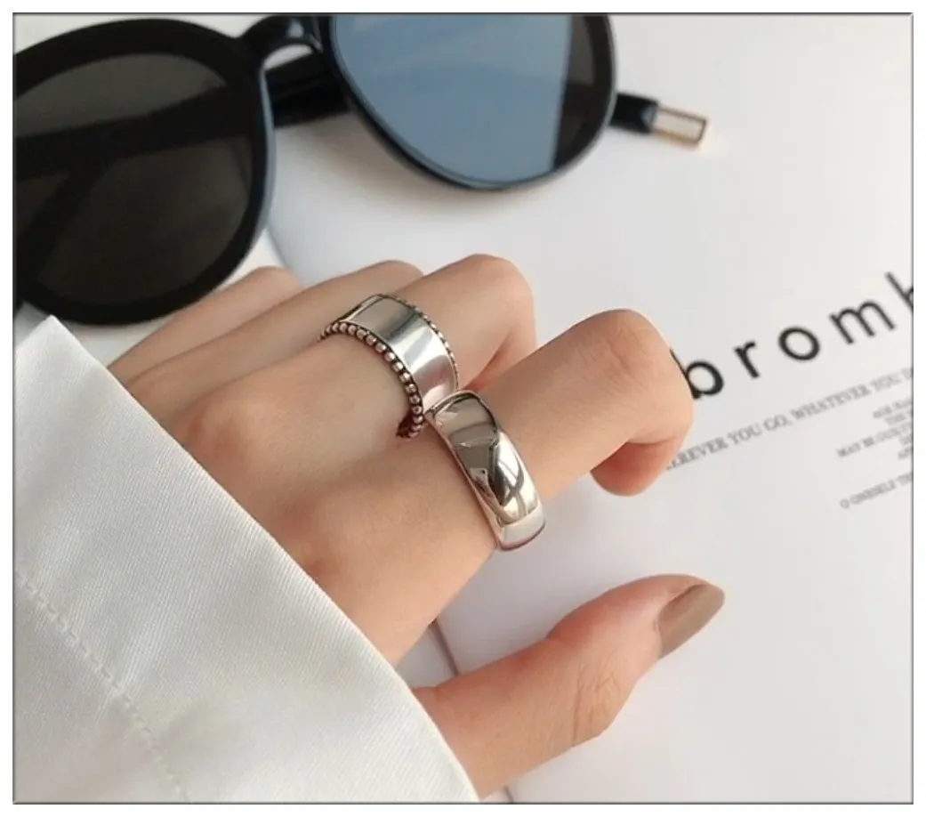 Чистый медный посеребренный материал, минималистичное яркое утолщенное глянцевое кольцо, регулируемый размер кольца, удобно носить.