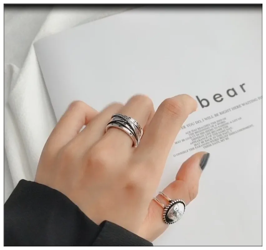 Чистый медный посеребренный материал, ретро многослойное английское кольцо с алфавитом, регулируемый размер кольца, удобно носить.
