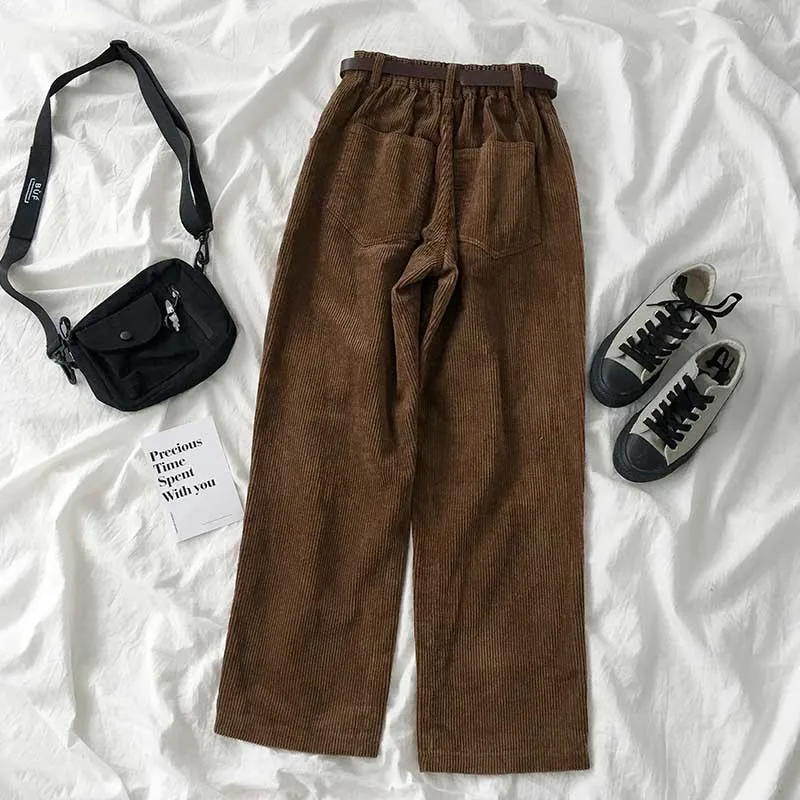 Отзывы о Черные прямые брюки с высокой талией и поясом женские повседневные вельветовые