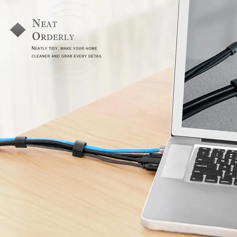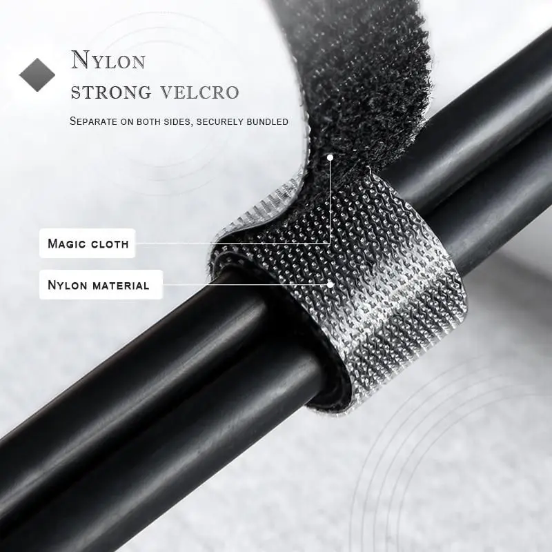 【Многоразовые и EFFICIET】-самоприкрепляющийся крюк и петля ленты, один обернуть на себя для надежного удержания. Многоразовые Кабельные стяжки. Отрежьте размер по мере необходимости, удобный выбор для тонких или громоздких кабелей, небольших или больших пучков.