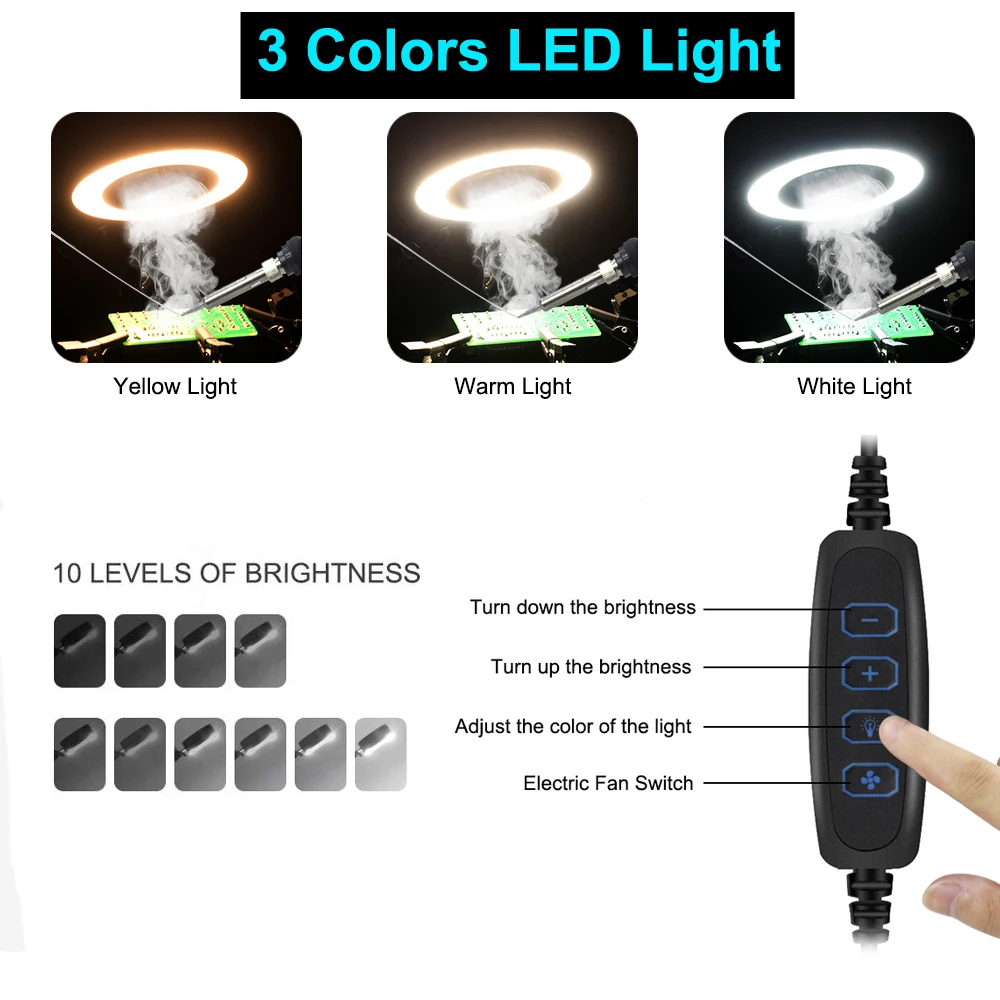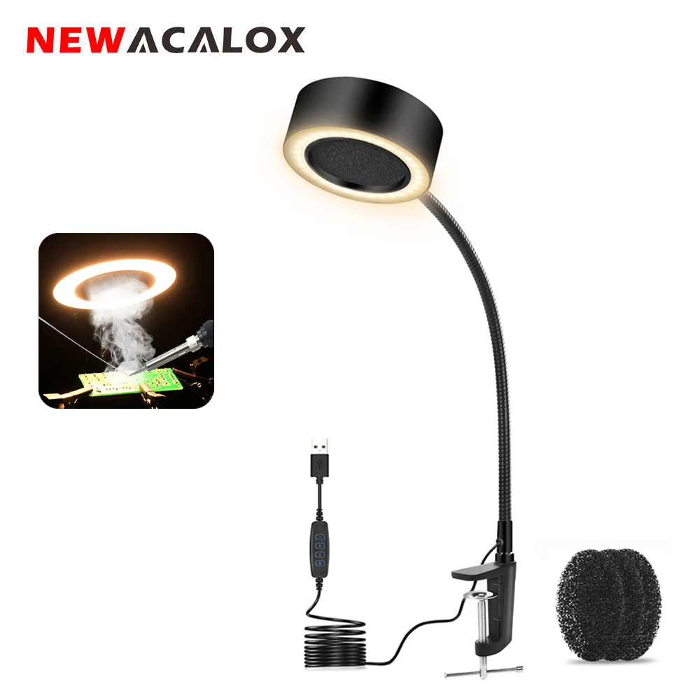 NEWACALOX светодиодный вытяжной вентилятор паяльник воздуходувка паяльная станция USB Настольный зажим сварочное устройство для курения инструмент для ремонтаОсобенности: