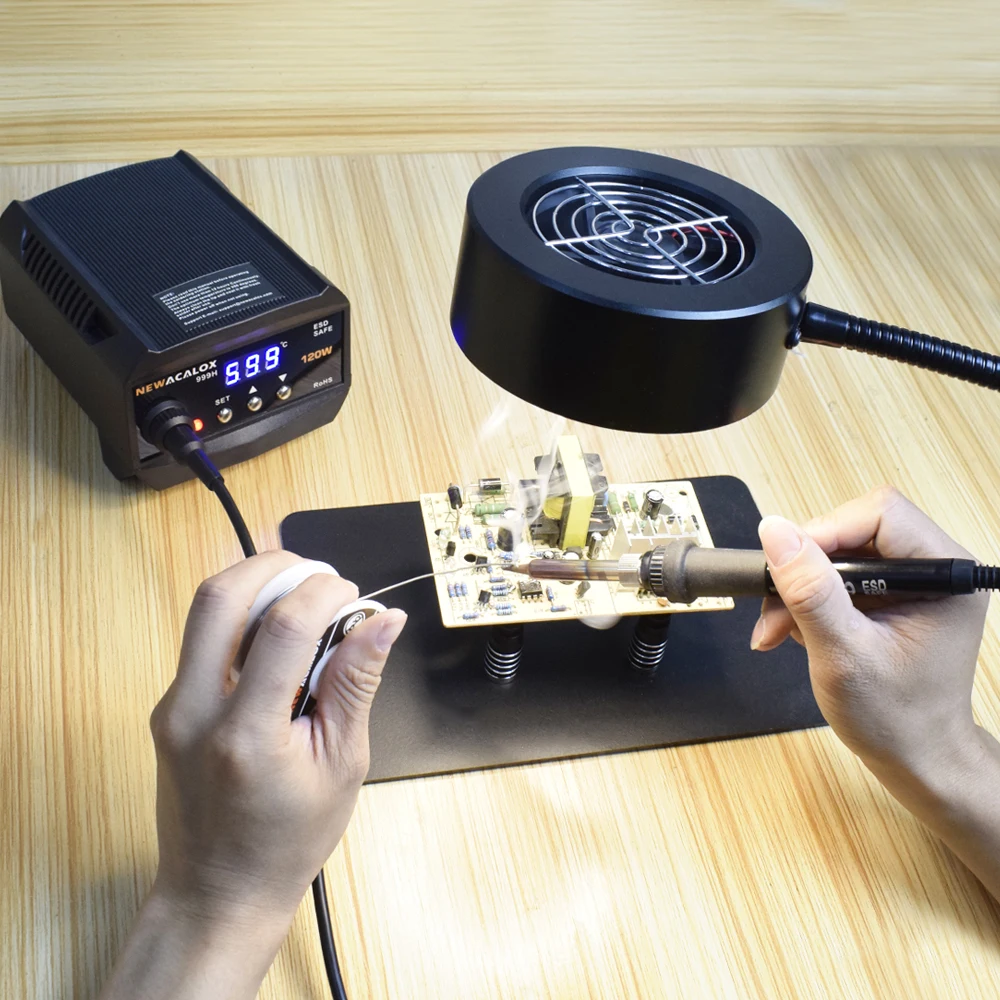 2. Мощный вытяжной вентилятор с регулируемой рукояткой и гибким зажимом стола, поглощающий угол отлично подходит для работы паяльной станции.