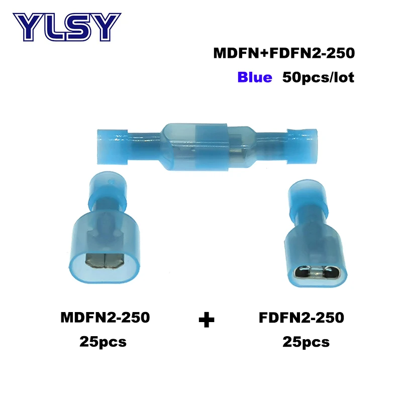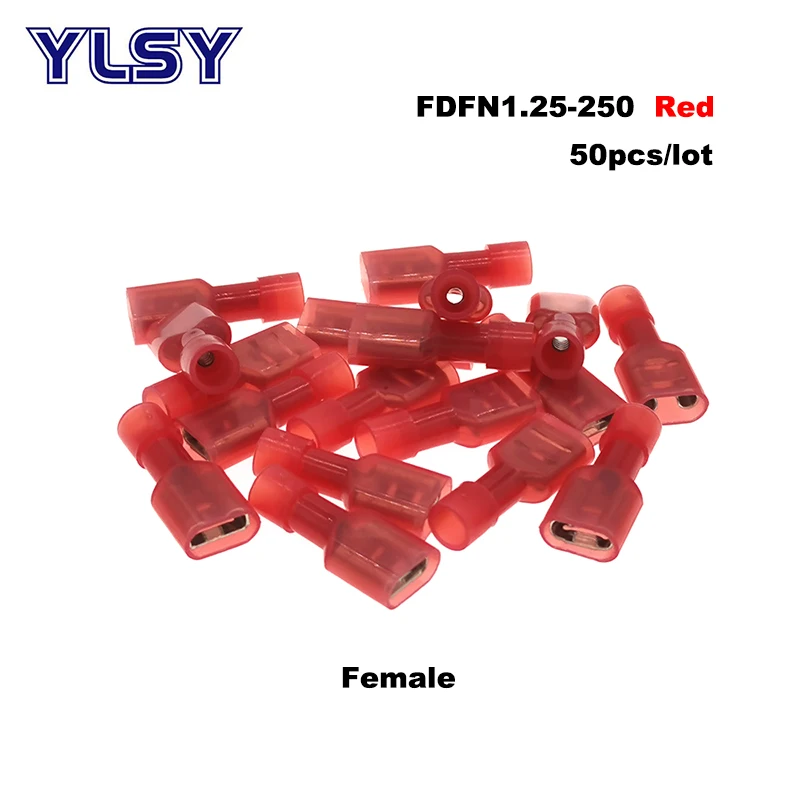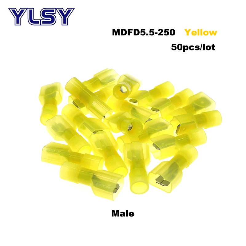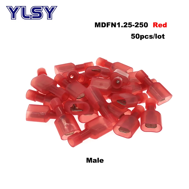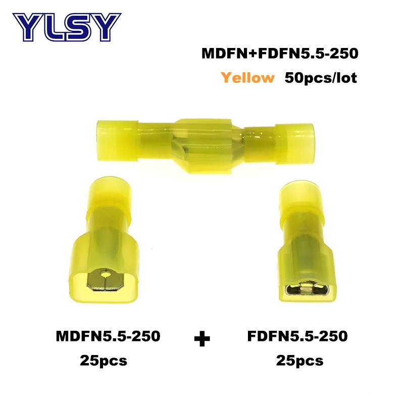 Соединители для электрических проводов MDFN/FDFN, латунные нейлоновые соединители 22-10AWG ОБЖИМНАЯ Изолированная клемма-6 мм2, 50 шт., папа-Мама, 0,5
