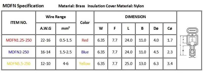 Купить Соединитель для электропроводов MDFN/FDFN латунные нейлоновые соединители 22-10AWG 0 5-6