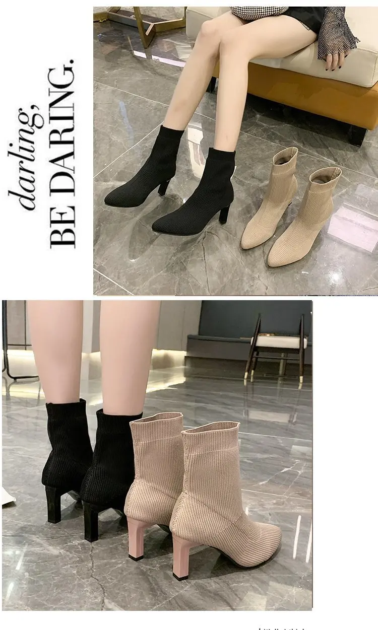 Отзывы о Женские ботинки эластичные вязаные ботильоны на высоком каблуке женские