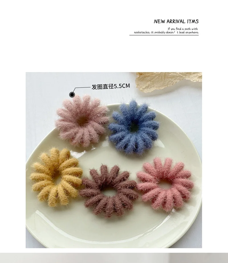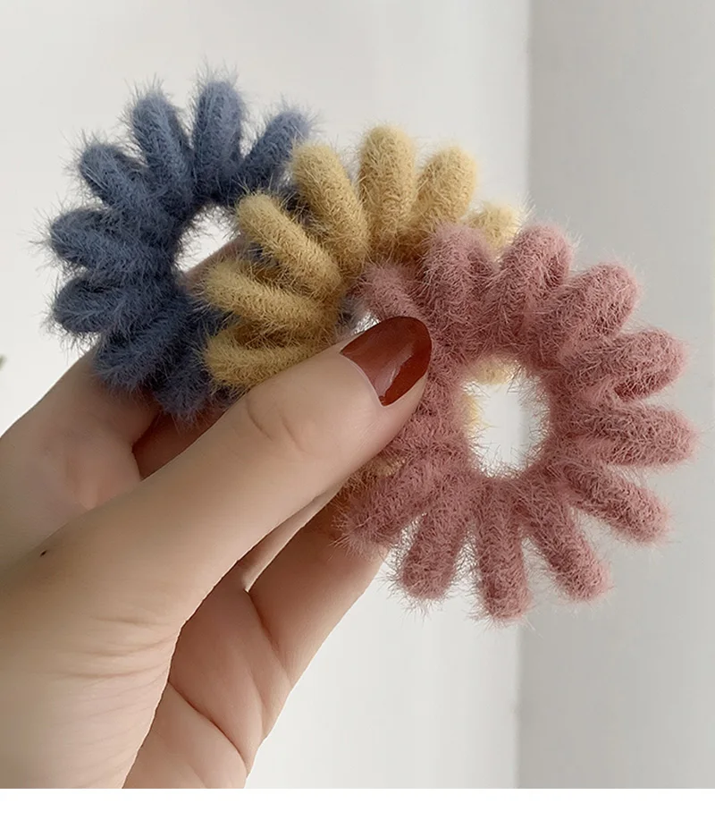 New Winter Korean Furry Faux Fur Telephone Wire Line Large Size Hair Tie Spiral Shape Rubber Elastic Hair Band Women Accessories