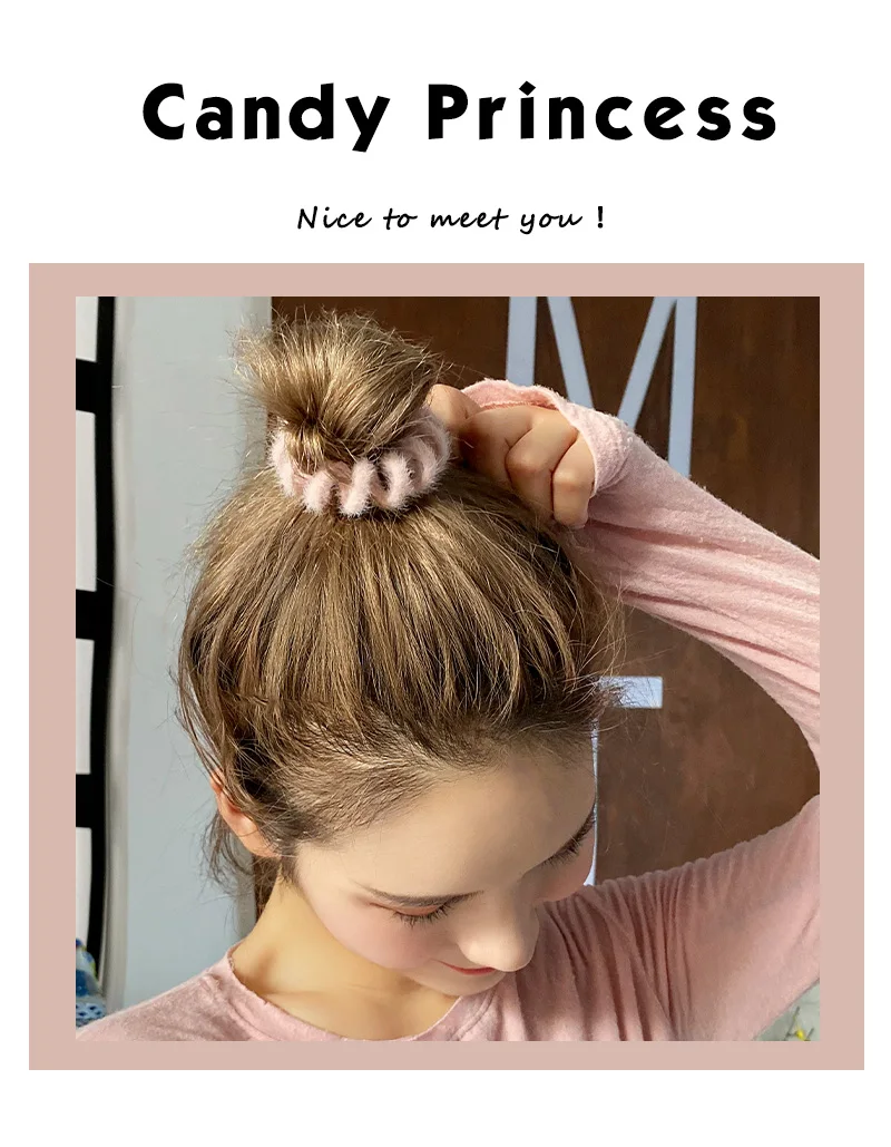 Product Name : Hair Ties Style: Fashion Feature : Telephone Wire Hair Ties Material : Faux Fur Color : As show Measurement : N/A Weight : About 10g Packaging : Opp bag