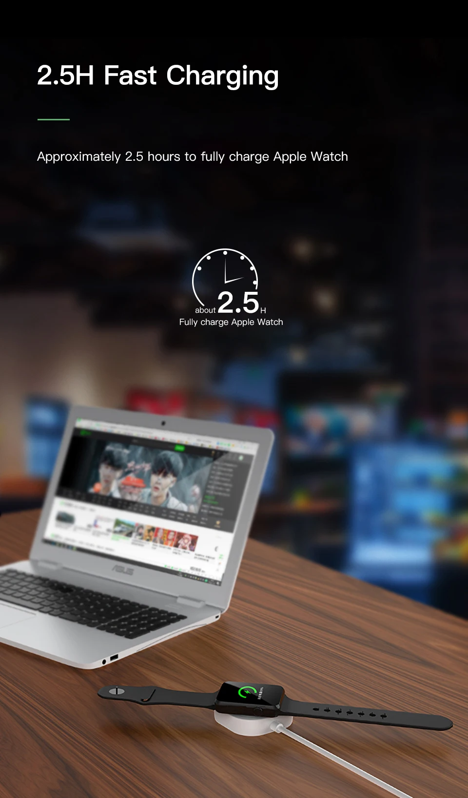 * Магнитный автоматически поглощающий для быстрой зарядки встроенный магнитный поглощающий модуль для магнитной Зарядки может автоматически поглощать часы для зарядки. * 2,5 ч безопасная и Быстрая зарядка * Корпус из поликарбоната и АБС-пластика, хорошая теплоотдача. Длительная работа сохраняет низкую температуру * Маленький и изысканный внешний вид плюс изогнутый край позволяет легко носить с собой дома и на улице
