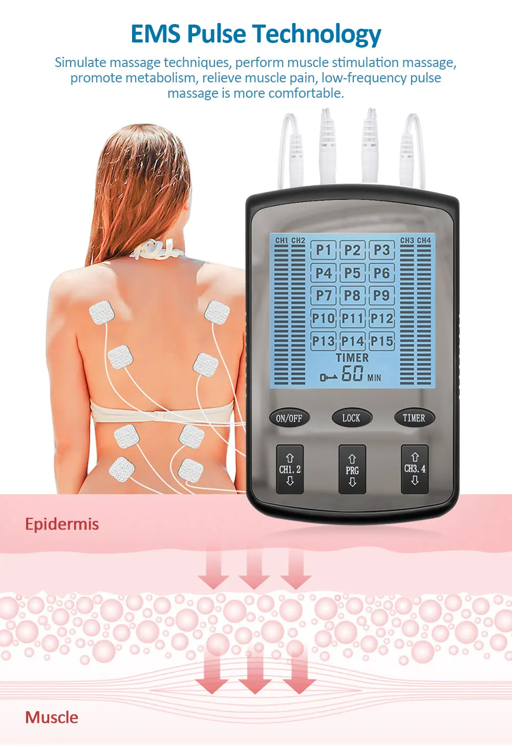 Массажер для тела с 4 выходами и 15 режимами электростимуляции EMS - купить