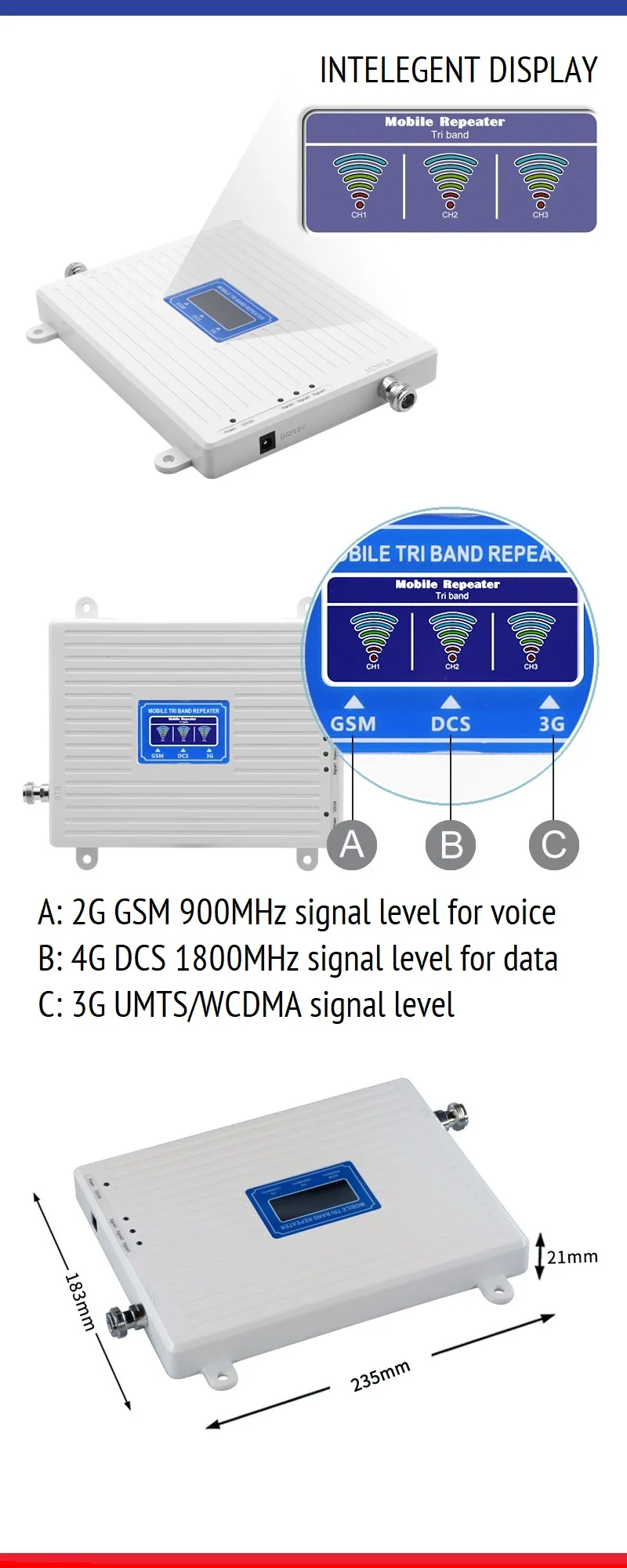 Трехдиапазонный усилитель сотовой связи band 7 B3 B8 900 1800 2600 2G 3G 4G Мобильные телефоны - купить