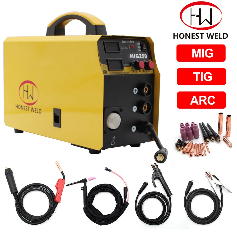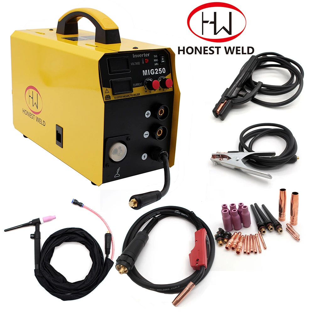 Фотографии сварочного аппарата MIG MIG250Посылка:1 шт. MIG2501 шт Mig фонарь1 шт. факел Tig1 шт. держатель электродаЗаземляющий зажим, 1 шт.