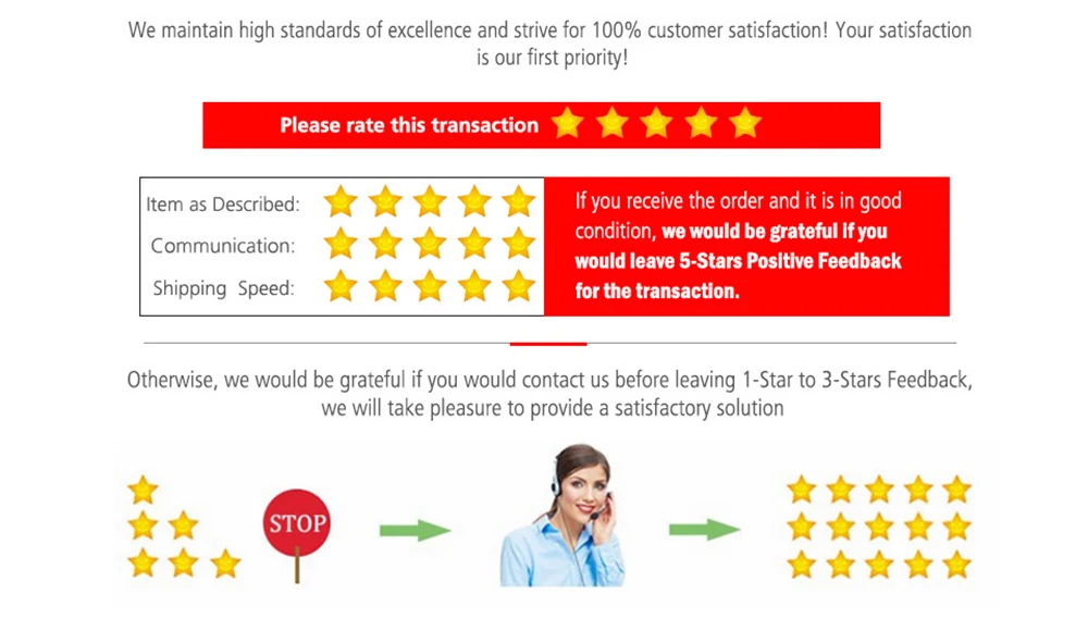 Честный сварной Интернет-магазин продает на основе нашего превосходного дизайна и проверенной надежности. Качество гарантировано. Также у нас есть команда занимающаяся вопросами качества которая проверяет заказанные вами товары чтобы они корректно функционировали прежде чем они будут упакованы и отправлены к вам. Но вам нужно внимательно подтвердить свои потребности!Внимание:Мы не можем принять обмен или отмену после отправки вашего заказа.При описании проблемы требуется следующая информация:* Номер заказа* Номер артикула товара* Фотографии дефектных товаров.Если у вас есть какие-либо вопросы относительно политики возврата, пожалуйста, свяжитесь с нами!
