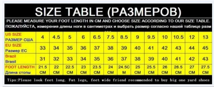 Пожалуйста, внимательно ознакомьтесь с таблицей размеров в соответствии с длиной Вашей стопы, чтобы выбрать размер, поэтомуДля выбора правильного размера!Пожалуйста, выберите американский размер, спасибо!Если выЕсли вы не уверены, какой размер вам подходит, пожалуйста, напишите нам!