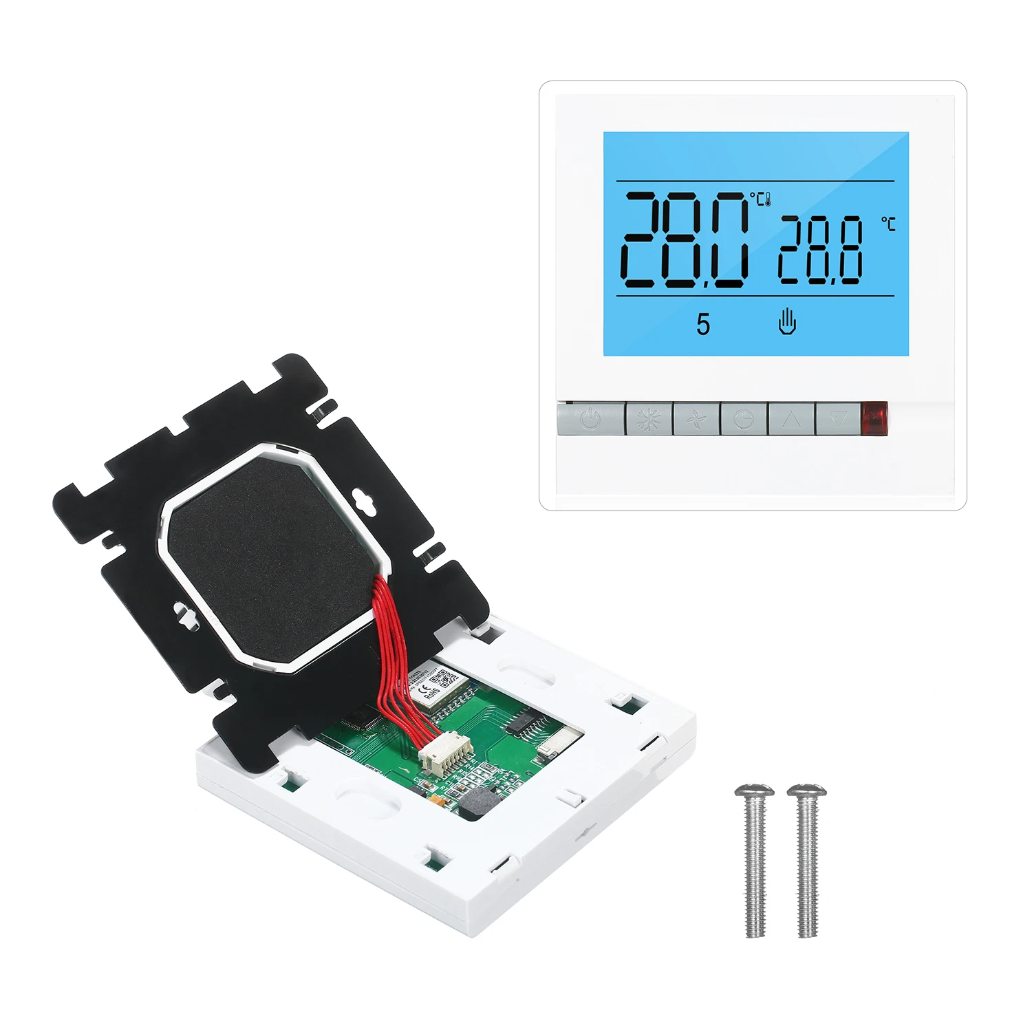 Еженедельный программируемый-поддерживает 5 + 2/6 + 1/7 дней различных температурных режимов в соответствии с 6 режимами ежедневной работы, высокоэффективный и энергосберегающий термостат, чтобы помочь снизить затраты на домашнюю энергию.