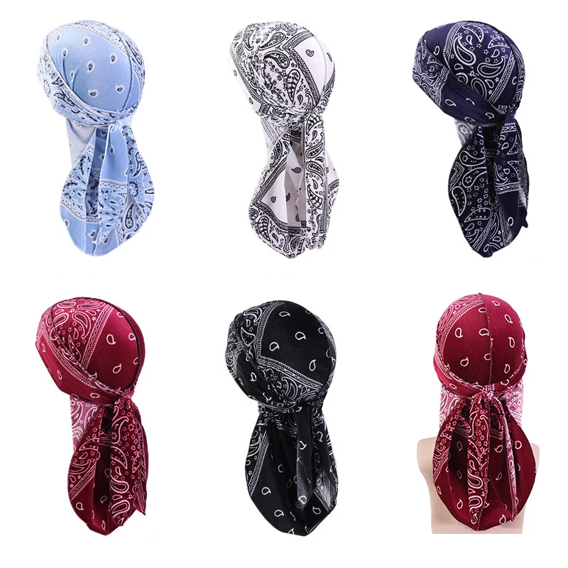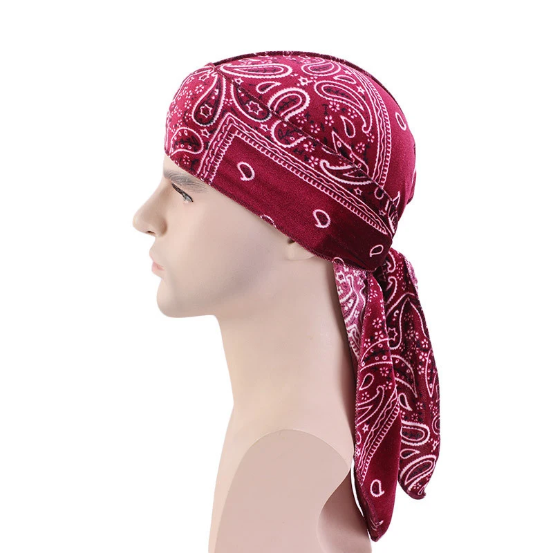 Отзывы о Fashion Cashew Printed Men's Velvet Durags Bandanna Turban Wigs Pirate Hat Men Durag Headwear Headband Biker Headwrap Chemo Cap