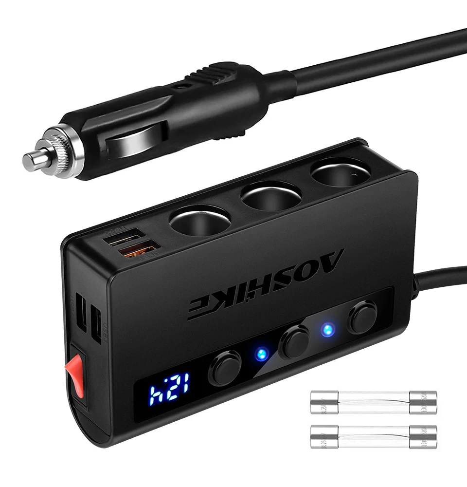 Отзывы о Адаптер для зажигалки AOSHIKE QC 3.0 180 Вт 12В/24В 3 розетки разветвитель 4 порта USB питание GPS/DashCam/телефона/iPad на автомобиле