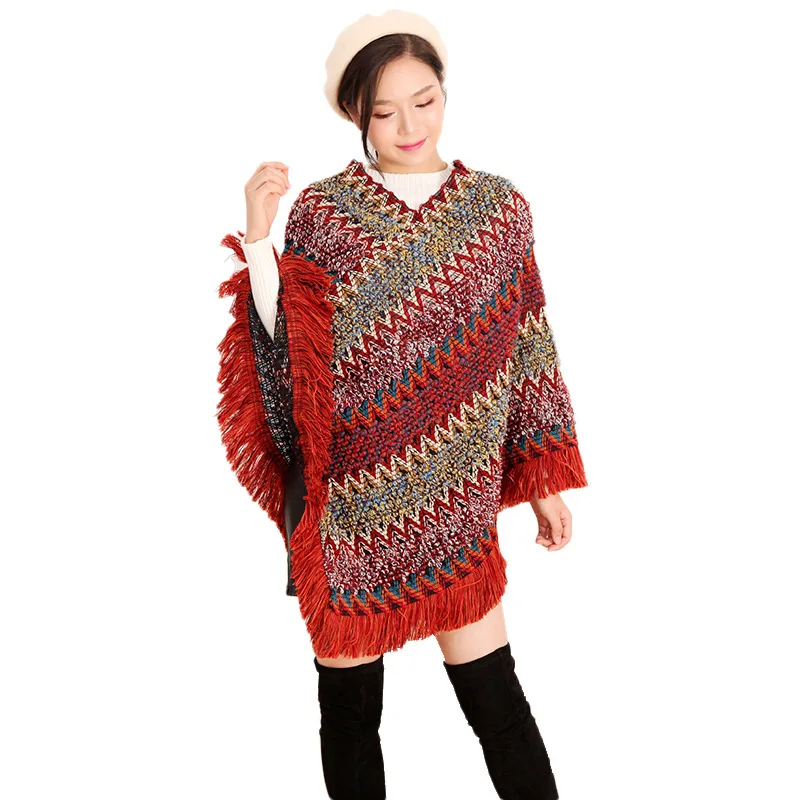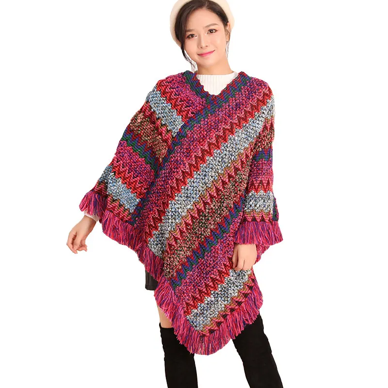 Купить Scarf Cloak Striped Coat Sweater Fashion Knitted Cardigan Autumn |