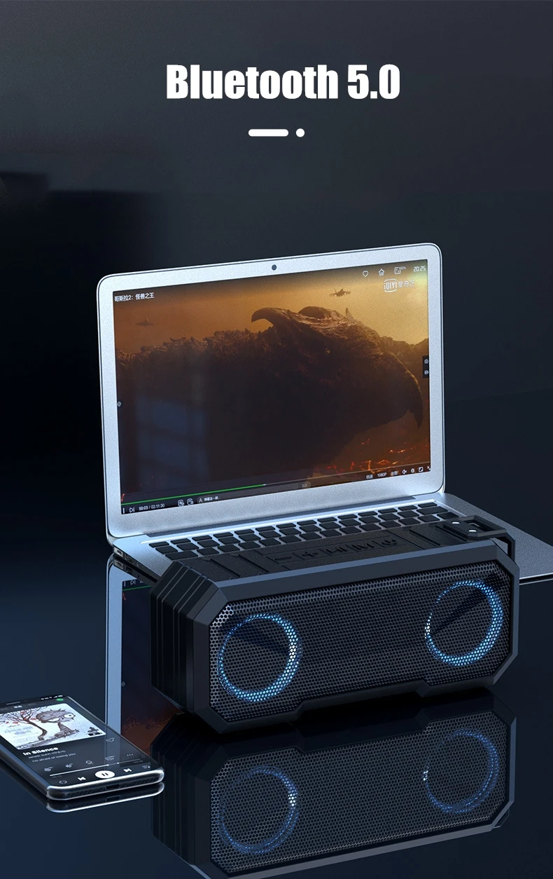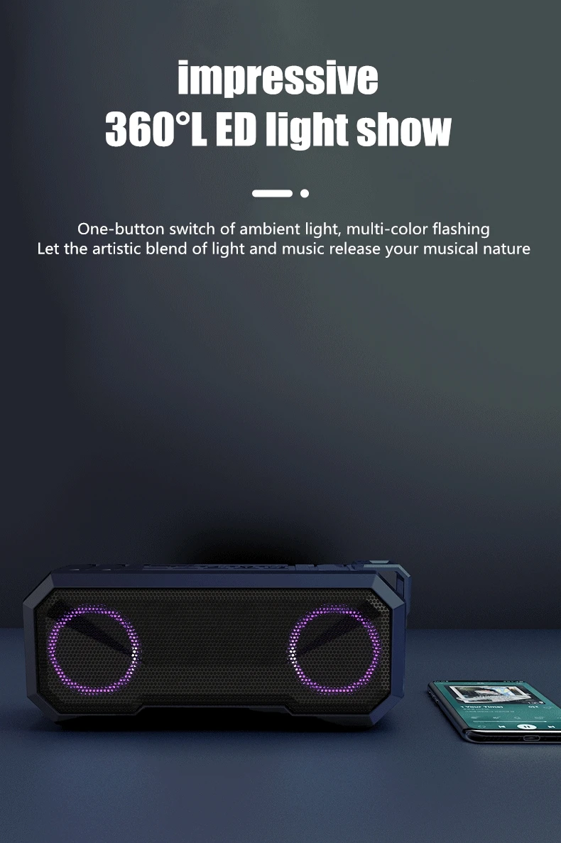 Портативная беспроводная Bluetooth Колонка для улицы IPX7 Водонепроницаемая сабвуфер цветная светящаяся панель звуковая колонка с внешним аккумулятором на 3000 мА · ч