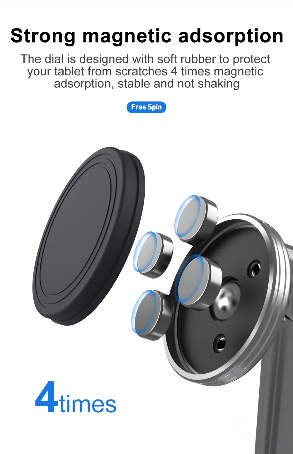 Циферблат изготовлен из мягкой резины, чтобы защитить ваш планшет от царапин в 4 раза магнитной адсорбции, стабильной и не тряски