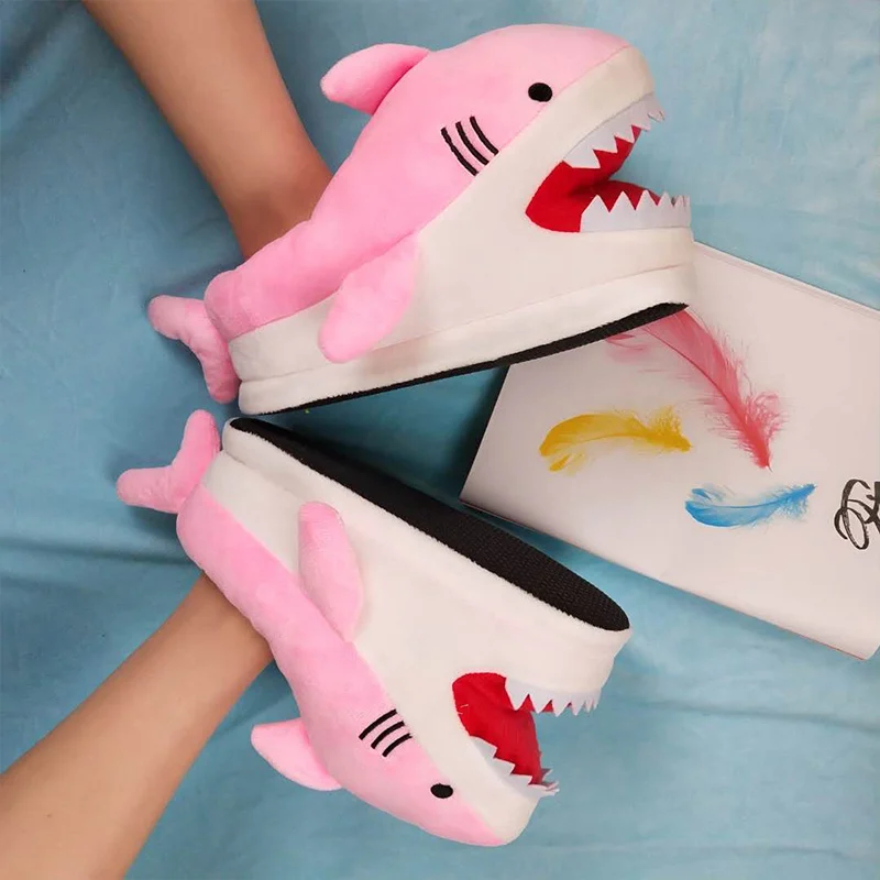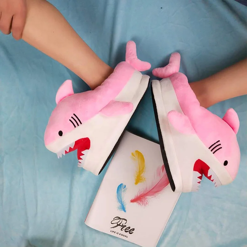 Купить Унисекс тапочки акулы для девочек Забавные меховые шлепанцы без задника с