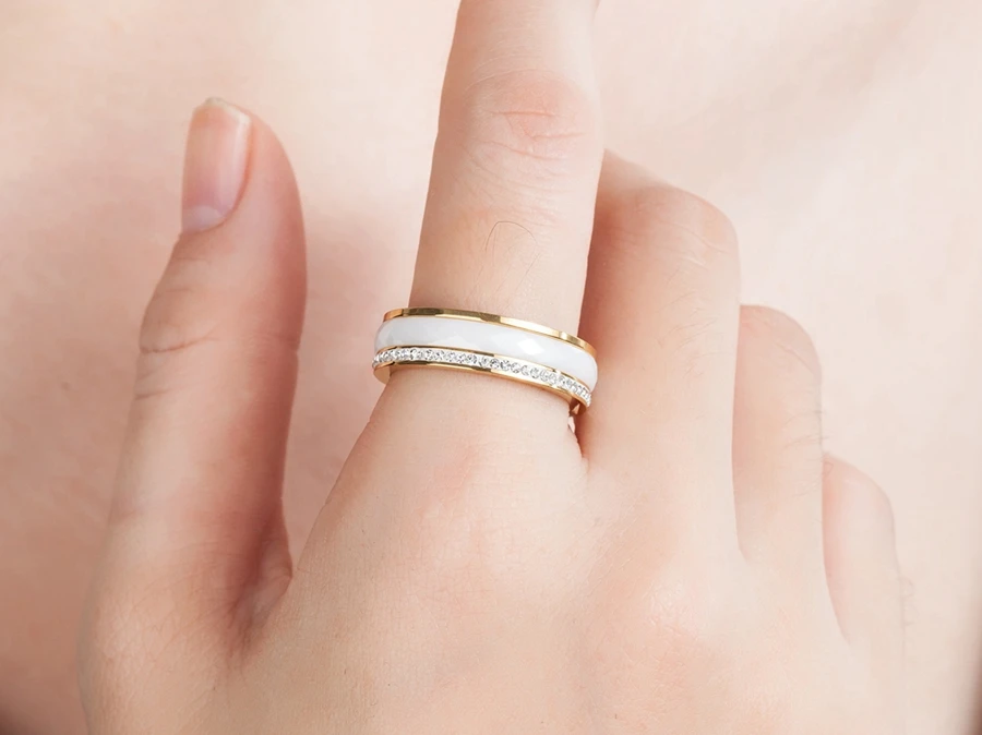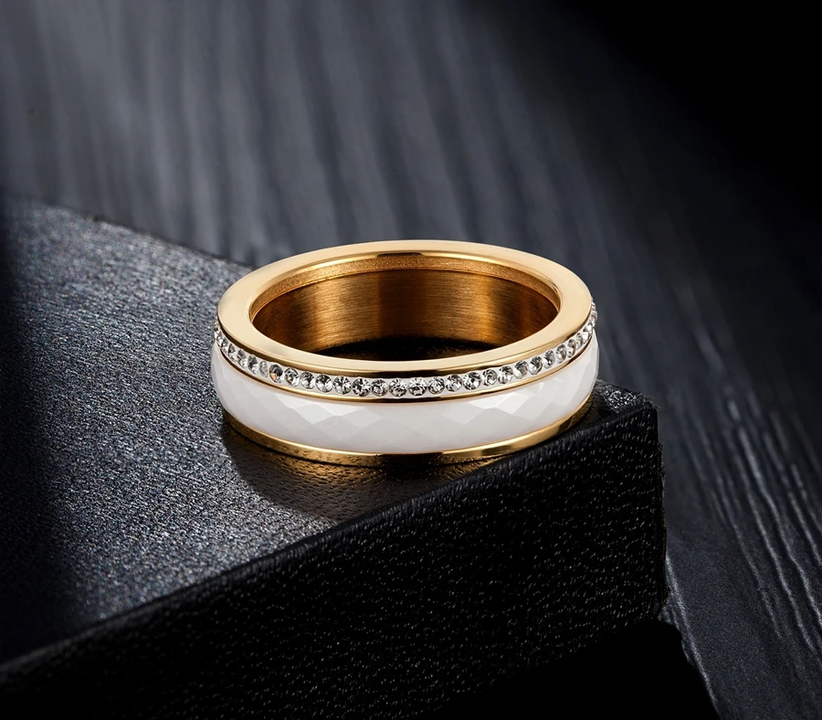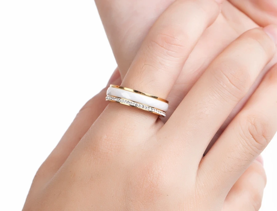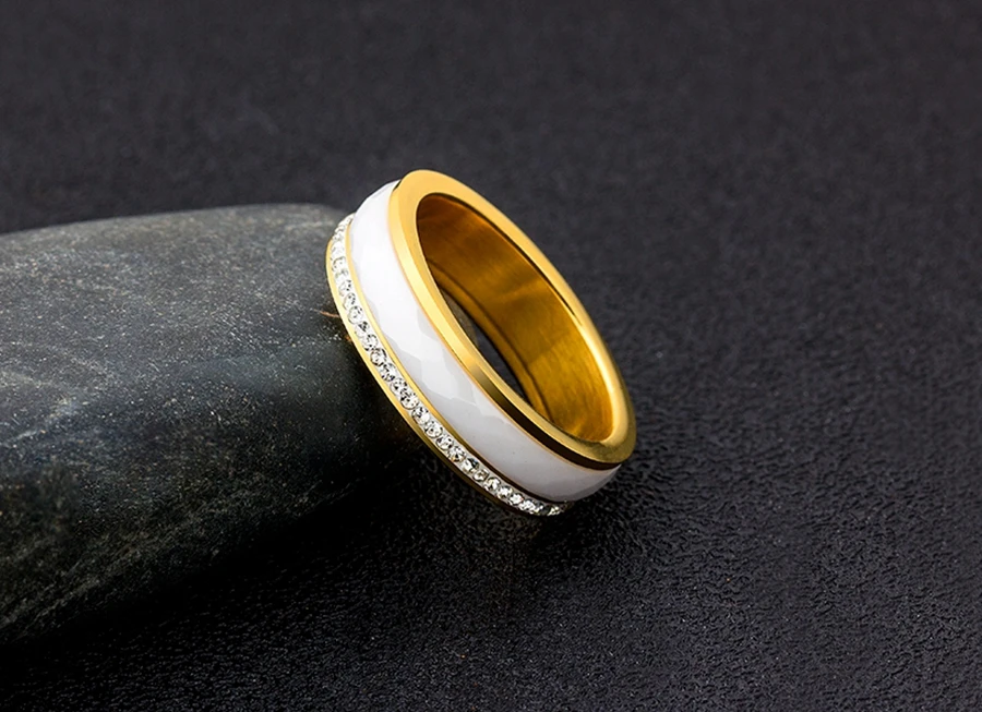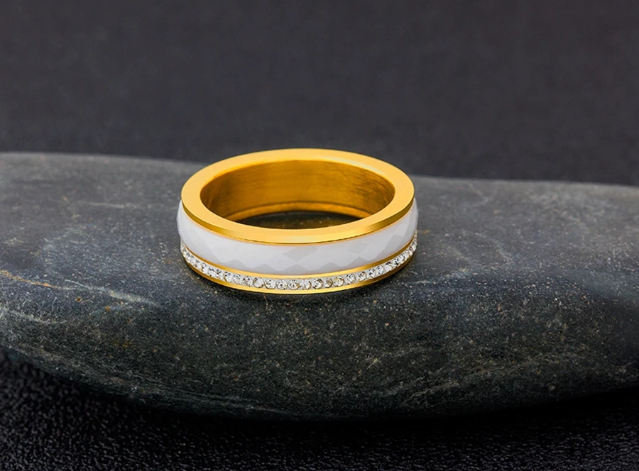 Название: плоское кольцо из нержавеющей стали с фианитом, комбинированное кольцо для женщин