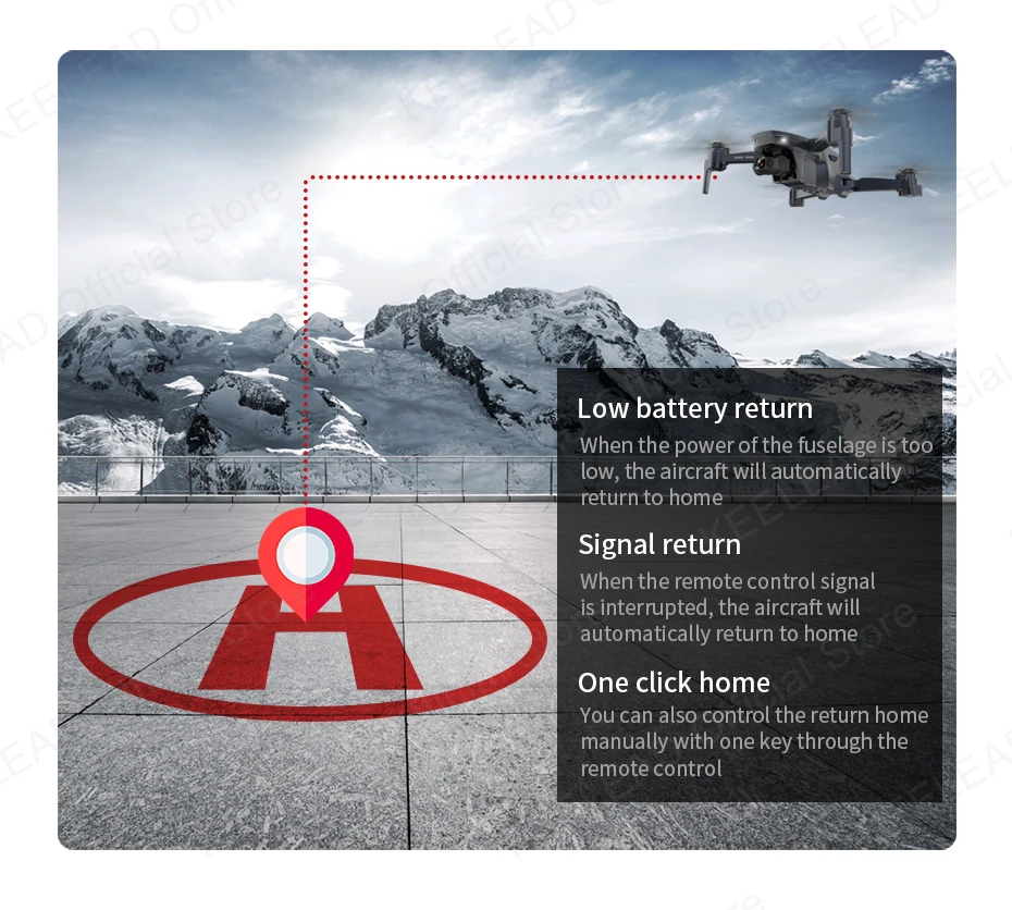 Fly PRO имеет различные функции возврата в дом. Он автоматически записывает исходное положение Перед снятием. Когда он должен вернуться домой автоматически, он автоматически реализует умный режим возврата в дом, И он автоматически вернется домой, когда батарея меньше, чем около 25%, или пульт дистанционного управления потеряет сигнал.