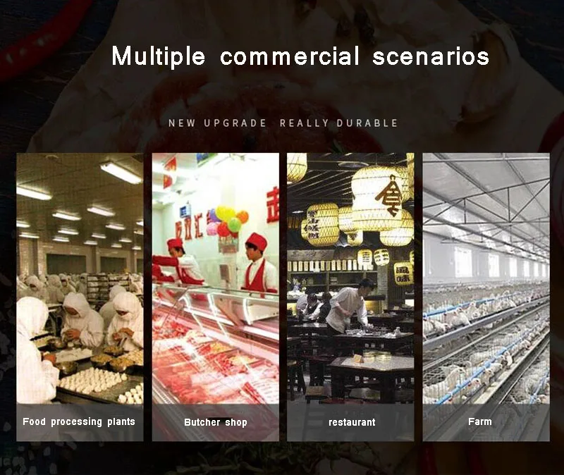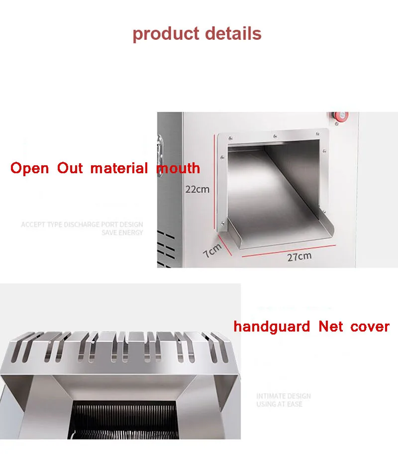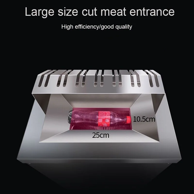 1. Большая емкость 2. Мощный двигатель 3. Тщательная работа 4. Материал: тонкая нержавеющая сталь 5. Хорошее качество, выгодная цена 6. Можно нарезать все виды свежего мяса 7. Использование нарезает все виды свежего мяса: свинину, говядину, курицу, рыбу и т. Д.