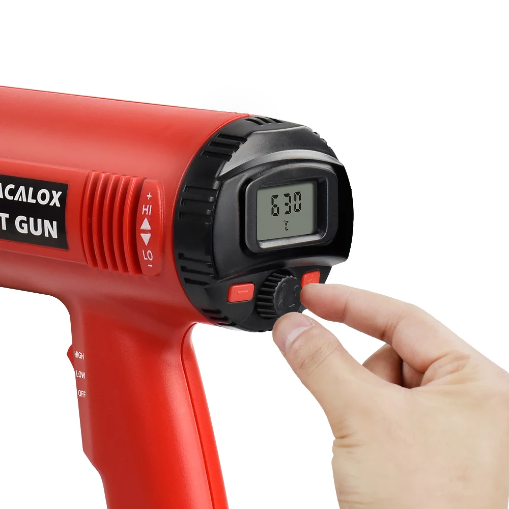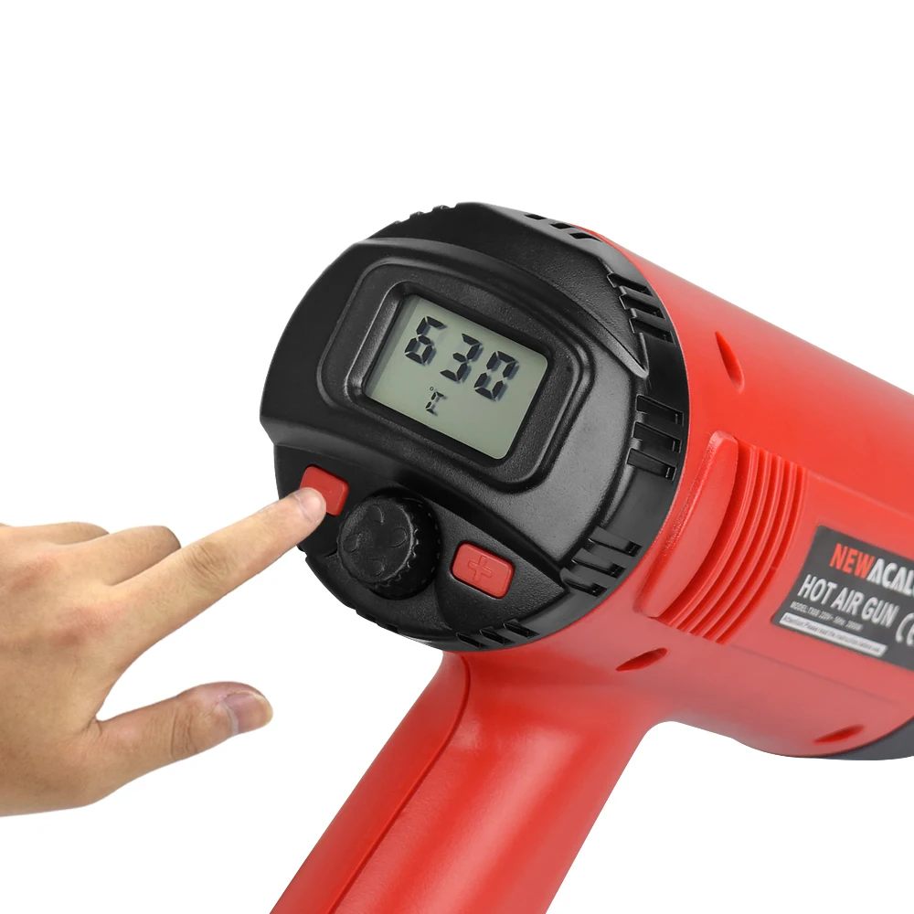 NEWACALOX 2000W 220V EU Plug Industrial Electric Heat Gun Thermoregulator LCD Display Hot Air Gun Shrink Wrapping Thermal Heater Power Tool