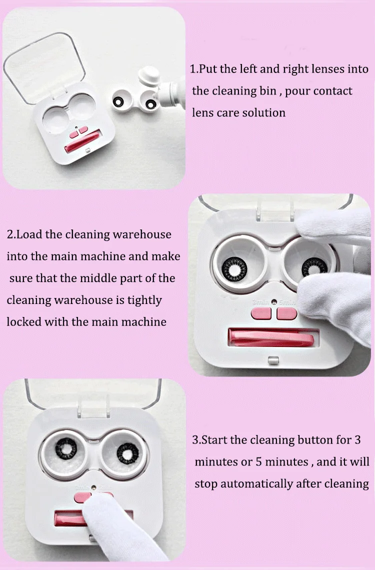 1. Перед первым использованием, пожалуйста, промойте склад кипятком. Не очищайте всю машину 2. Не повторно использовать раствор для контактных линз