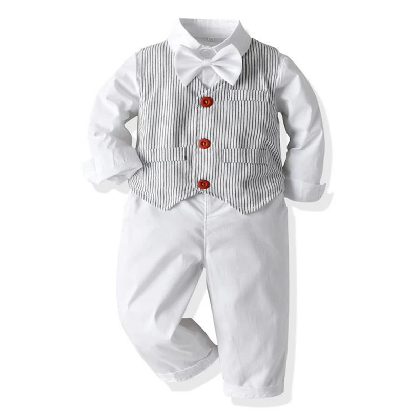 Купить 3 шт. Детские деловые костюмы для мальчиков жилет в полоску + белая рубашка с
