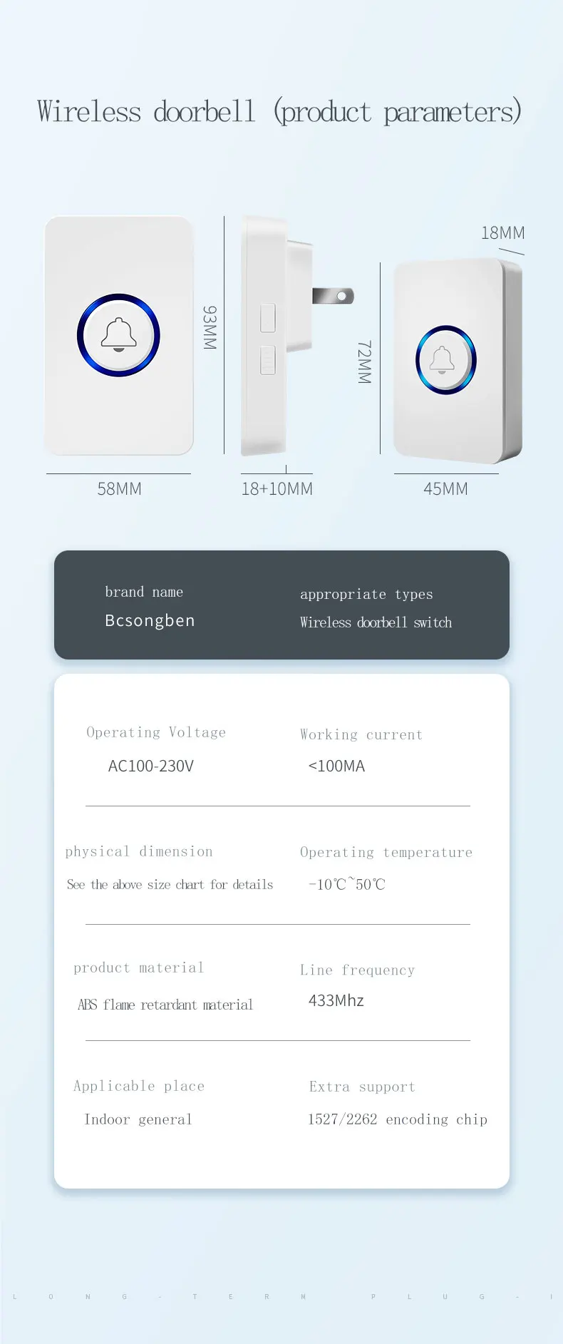 Беспроводной водонепроницаемый дверной звонок KEKA 1 кнопка приемник - купить