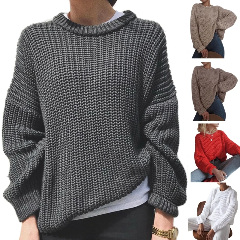 Для женщин с длинным рукавом толстый вязаный свитер О-образным вырезом зимний и - купить