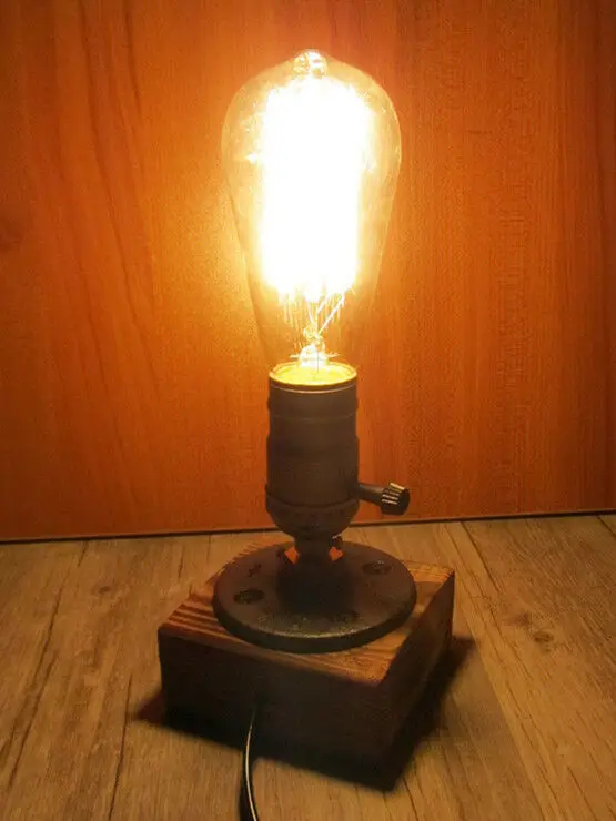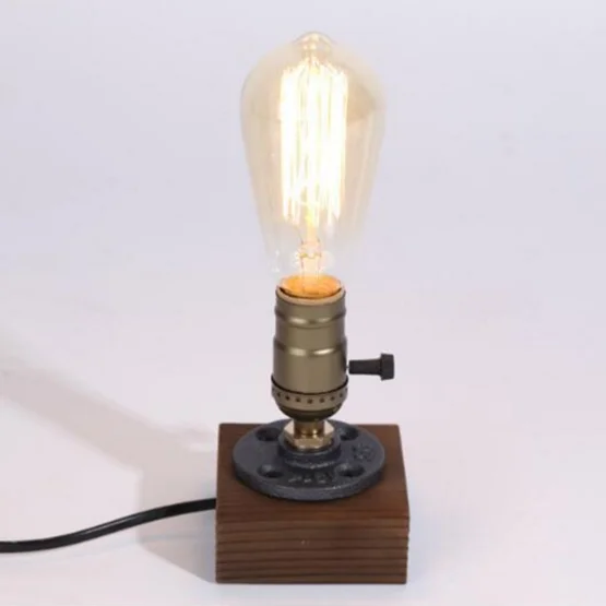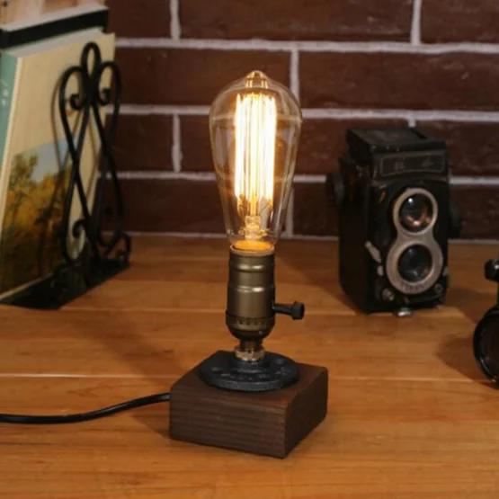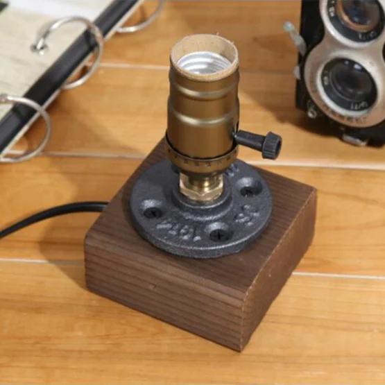 Винтажная настольная прикроватная лампа В индустриальном стиле ретро с одним разъемом и деревянным основанием