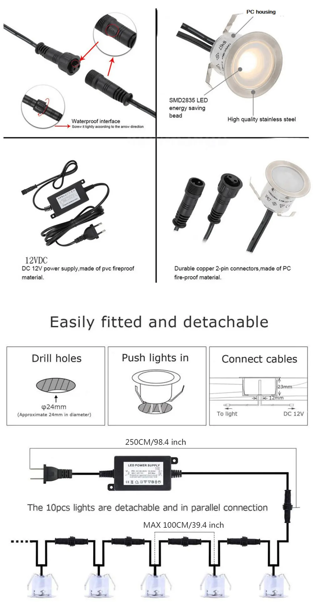 3) съемное и параллельное подключение: 10 шт. ламп являются съемными и параллельными, вы можете установить их только в соответствии с вашими потребностями.