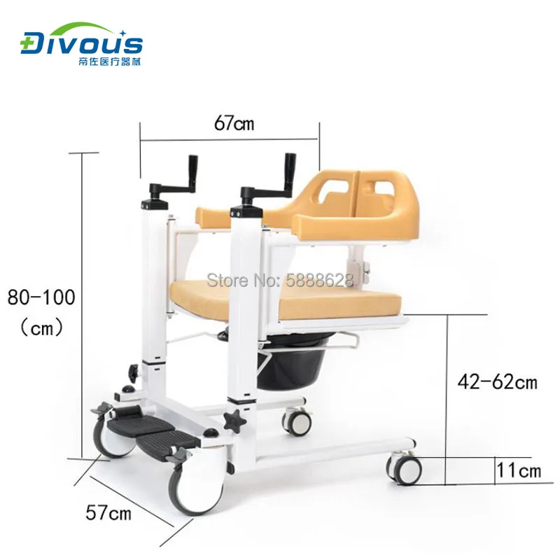 Может использоваться как кресло-туалет, инвалидное кресло, подъемник пациента