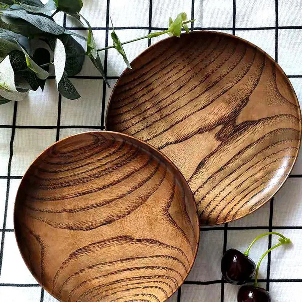 Отзывы о Круглый деревянный набор тарелок натуральный Акация деревянная посуда тарелки