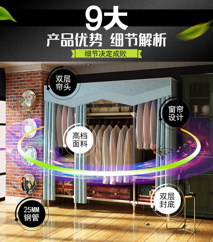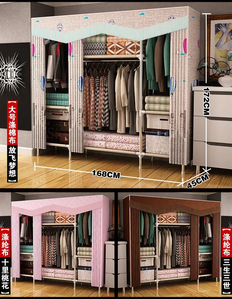 1000 гардероб простой тканевый стальная труба усиленный утолщенный домашний из - купить