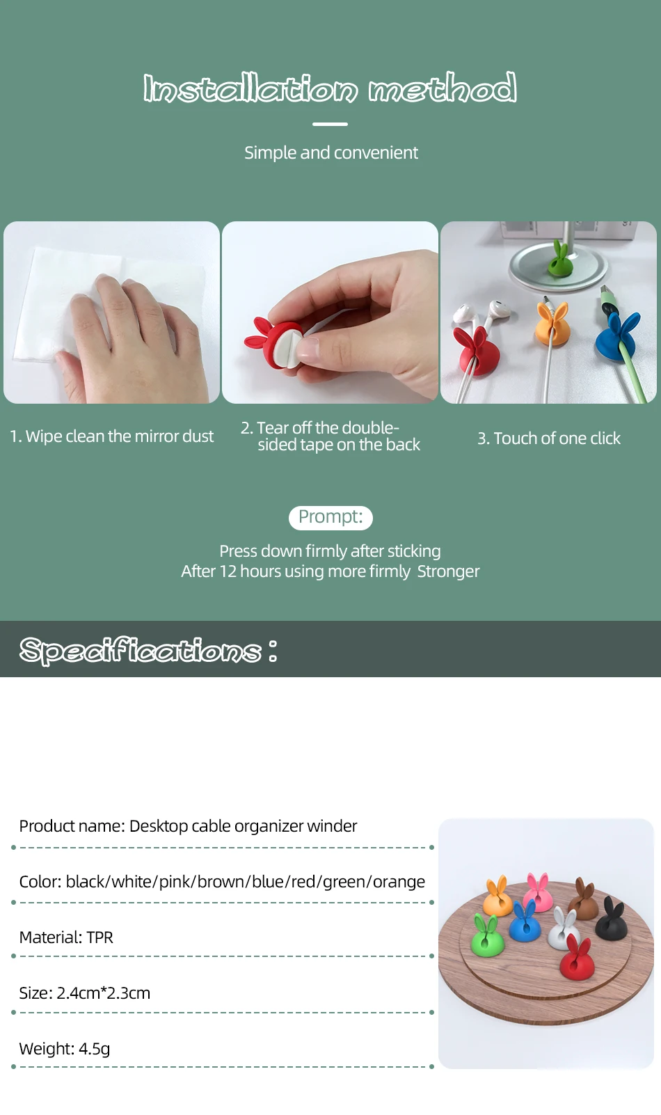 Преимущества: 1. Широкое использование-Эти кабельные зажимы помогут справиться с вашими зарядными кабелями, USB-шнурами, шнурами питания, зарядными устройствами для сотовых телефонов и т. д. 2. Невероятно долговечные: зажимы сделаны из высококачественного материала, способного служить долгое время, поэтому вам не придется беспокоиться о качестве даже после долгого периода использования. 3. Идеальный способ сохранить чистоту и красоту стола: силиконовые зажимы для кабелей помогают организовывать их, что делает ваш стол чистым и красивым. Обслуживание: Если у вас есть какие-либо вопросы, пожалуйста, свяжитесь с нами, и мы сделаем все возможное, чтобы вам помочь. Дорогие друзья из России, в соответствии с правилами РФ, пожалуйста, укажите свое полное имя в заказе. Спасибо! Приветствуются прямые поставки/оптовые продажи