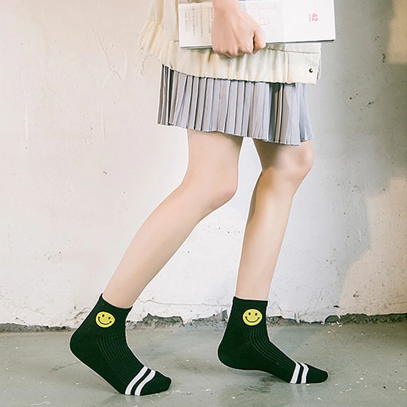 Отзывы о Носки женские черные в стиле Харадзюку с забавными улыбками носки бабочками