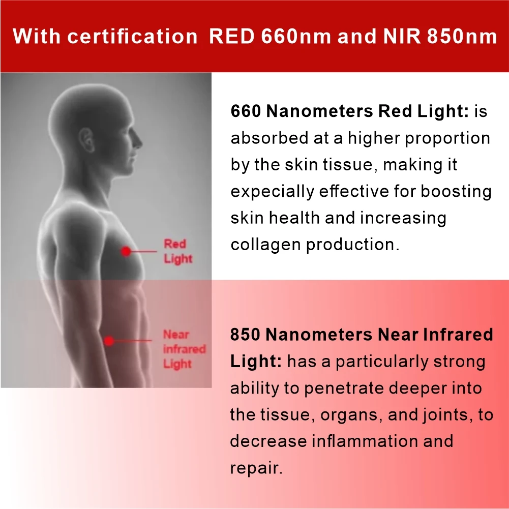 Красный светильник (RLT) предназначен для решения проблем с кожей, используя красный светильник с низкой длиной волны. Многие эксперты считают, что это может помочь Такие проблемы, как состояние кожи, рубцы и признаки старения, включая морщины и возрастные пятна. Так что это может быть для меня здоровье кожи. Красный светильник также имеет следующие преимущества для здоровья: Уменьшает воспаление Потеря Жира улучшает функцию щитовидной железы Уменьшение боли в суставах увеличение восстановления мышц Улучшение качества сна Повышение познания и памяти