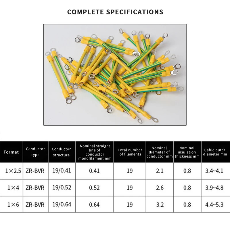 BVR Solar Photovoltaic Grounding Wire with Terminals 10/12/14 AWG Solar Earth Wire Yellow-Green Flexible Copper Earth Cable