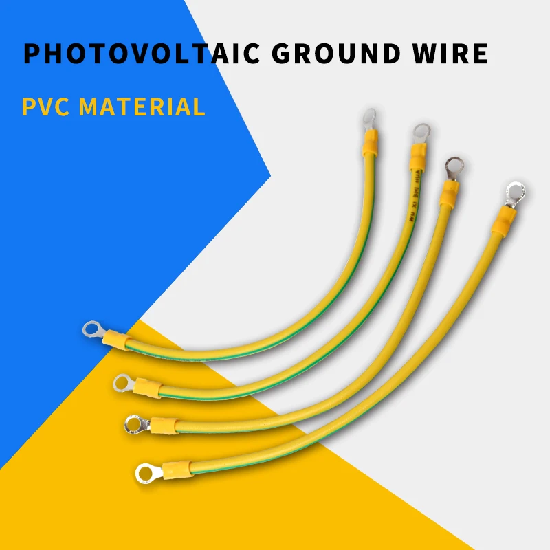Купить BVR Солнечный фотоэлектрический заземляющий провод с терминалами 10/12/14 AWG Земля желто-зеленого цвета Гибкий медный кабель.