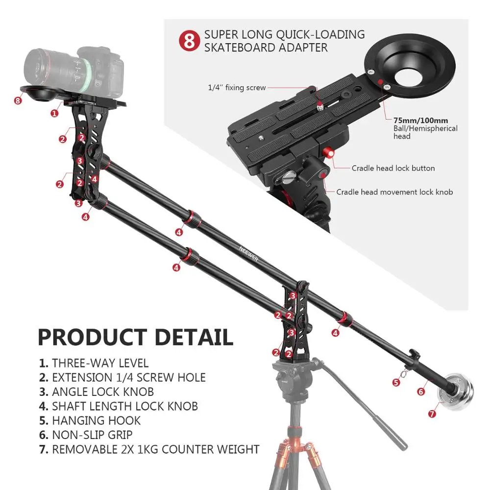 Сильная Универсальность: этот кран может быть установлен на любом штативе. Это очень полезный инструмент для перемещения влево, вправо, вверх, вниз, оставляя ожидаемую гибкость и минимизируя неудобное перемещение