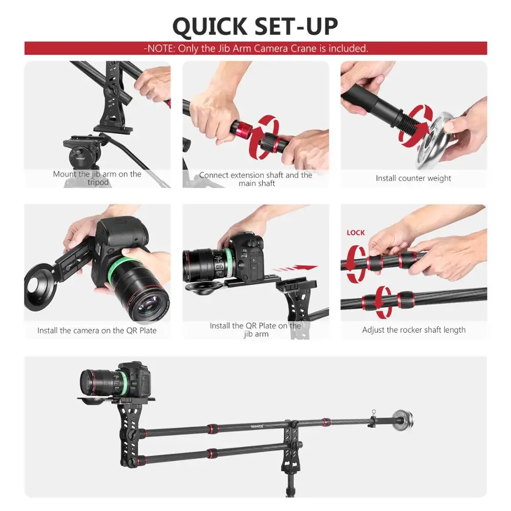 Neewer 75,7 дюйма/200 сантиметров карбоновый стрелочный кран для камеры с 1/4 и 3/8 дюймовым быстроразъемной пластиной для обуви, вес прилавка для DSLR видеокамеры s, нагрузка до 8 кг/17,6 фунтов